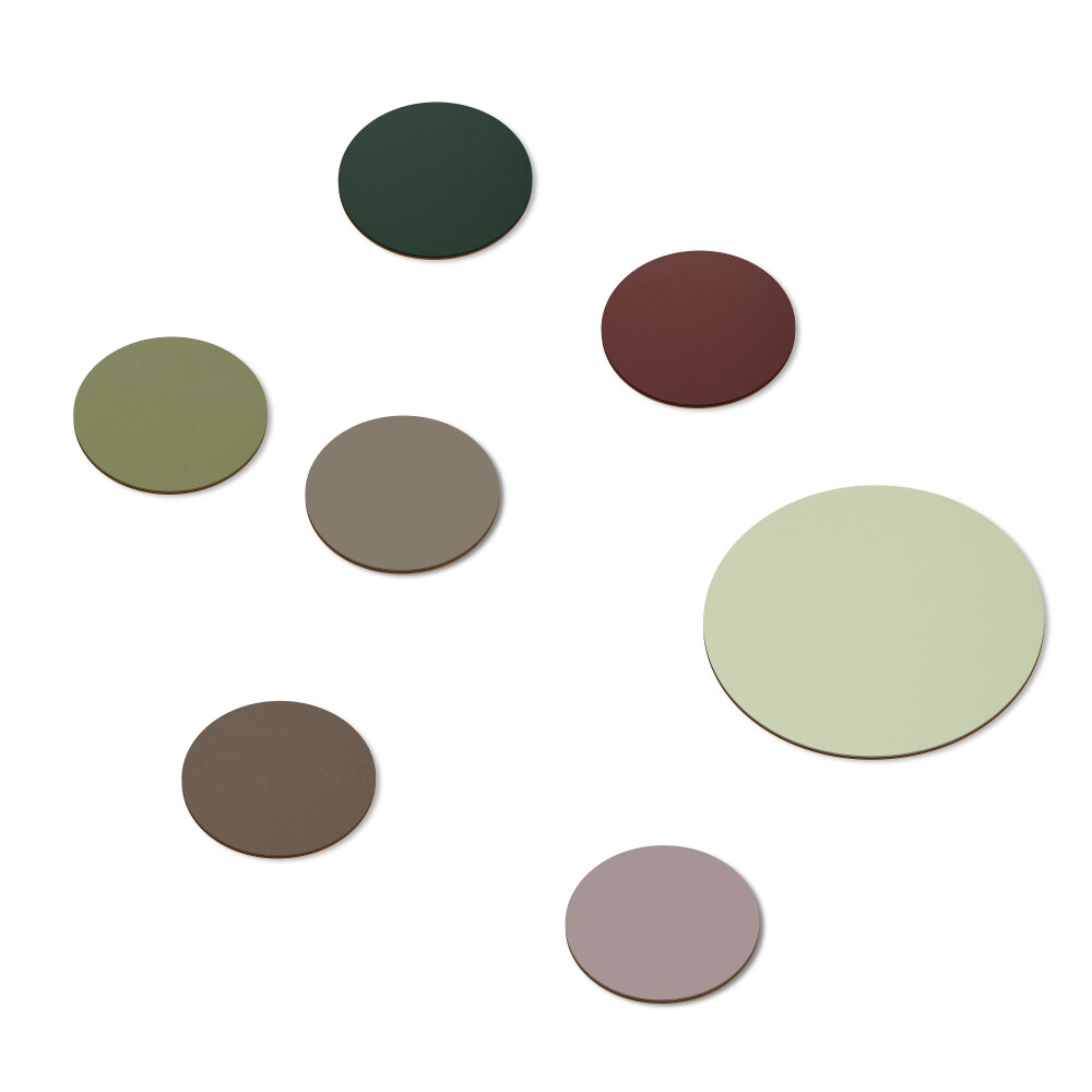 Jedes Set enthält sechs kleine (⌀ 11 cm) und einen großen (⌀ 17 cm) Untersetzer.