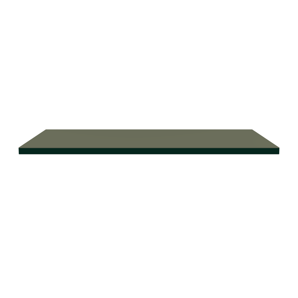 Tischplatte - Form Eckig - Länge 120,00 cm - Tiefe 70,00 cm - Radius 0,30 cm - Stärke 3 cm - Oberseite Linoleum, 4184 Olive - Kern Stäbchenplatte - Kante Linoleum, 4174 Conifer - Kantenschräge 90°