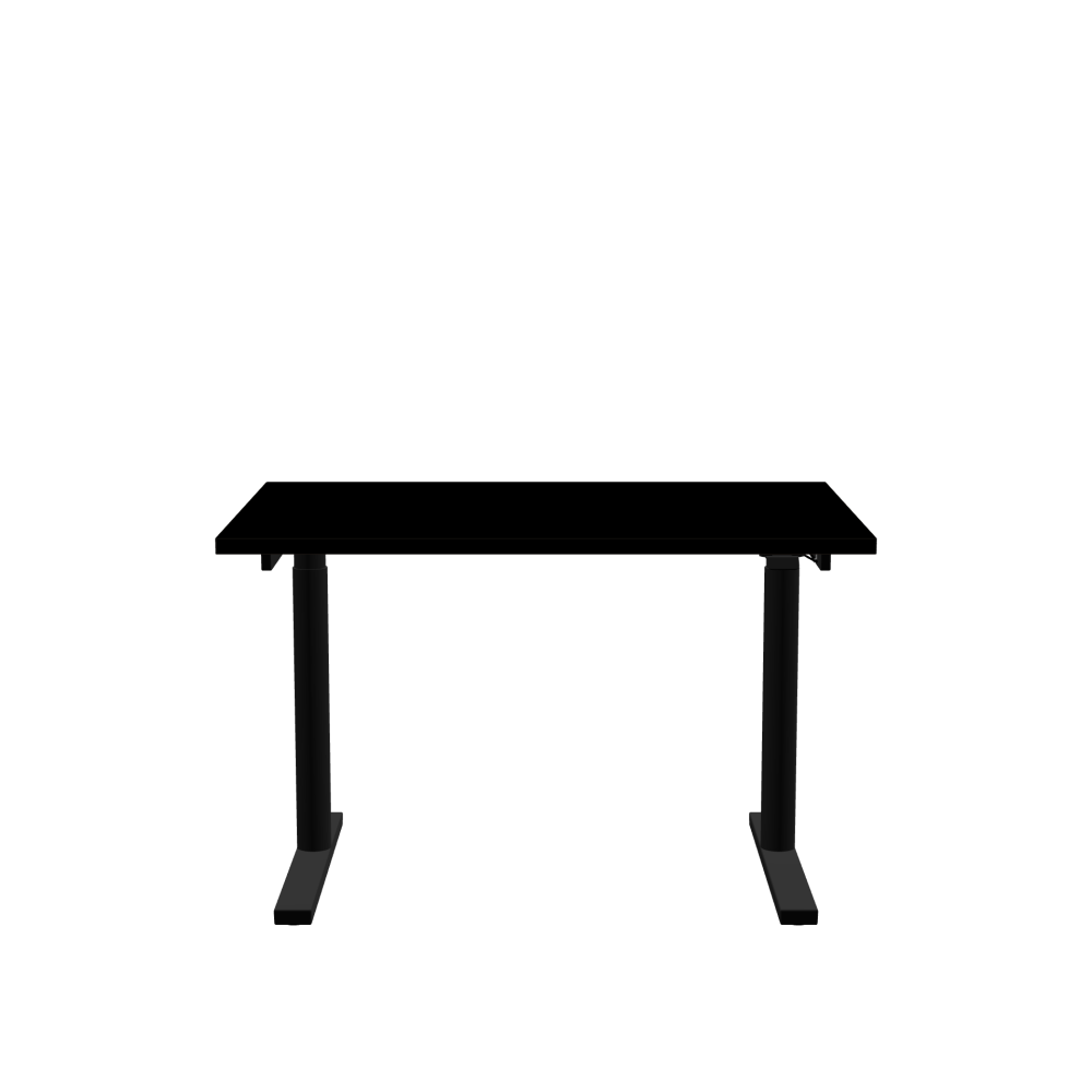 ATS Desk - Shape Square - Length 120.00 cm - Width 80.00 cm - Radius 0.30 cm - Thickness 3 cm - Surface Linoleum, 4023 Nero - Core Laminboard - Edge Linoleum, 4023 Nero - Profile Edge 90° / ATS Desk Frame - Material and Colour Powder coated, Jet black (RAL 9005) - Size L 106 × W 71 cm - Lifting Columns Round - Control Unit Standard