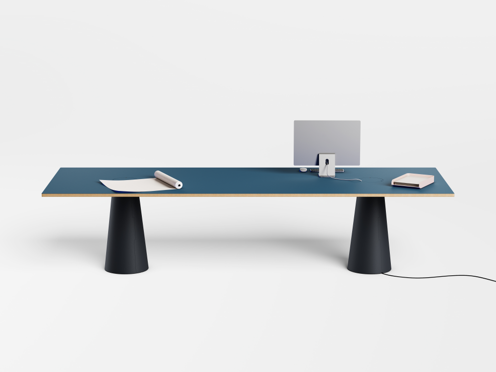 The ALT system offers optional unique and discreet cable management detailing such as an integrated cable lid and cable tray to conveniently turn ALT into a functional table. These features include a cable tray and hole at the base of the stand for hidden cables, plus a linoleum-covered lid that sits flush with the table surface and helps guide cables where needed. These discreet details add functionality to the table surface, meaning ALT is a highly functional and effective choice for workspaces and meeting environments, ideal for offices and conference rooms.
