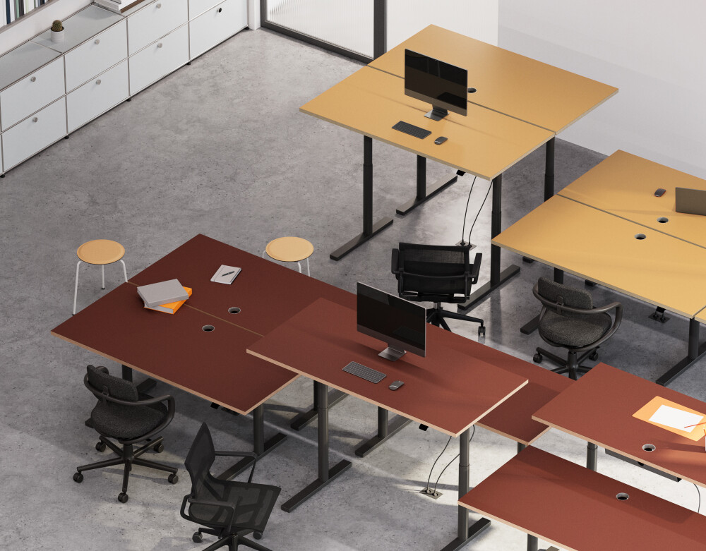 ATS is suitable for single desks and double clusters, conference tables and large benches, both business and private study spaces. Alternating between sitting and standing while working has been proven to benefit productivity and wellbeing for focused tasks, dynamic teamwork and meetings.